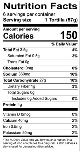 These Organic Non GMO tortillas have an authentic homemade flavor. No artifical additives or preservatives. Aluminum free baking powder. Per serving: 0g trans fat; 0mg cholesterol; 0g saturated fat. Whole Wheat and White. 6 count.